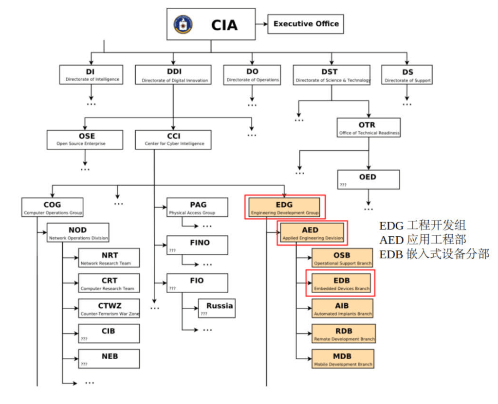 According to the “Vault7” data, the above-mentioned network attack weapons belong to the Engineering Development Group (EDG) of the US Central Intelligence Agency (CIA), and are independently or jointly developed by multiple branches under it, including the Applied Engineering Department (AED) and the Embedded Devices Branch (EDB). Most of these network weapons were born in a highly confidential internal network of the CIA called “devlan.net.” “Devlan.net” is a massive network weapon development and testing infrastructure established by the Engineering Development Group (EDG) of the CIA. According to the development log data of “devlan.net,” at least 200 engineers from the EDG were involved in the development of only the “HIVE” project.